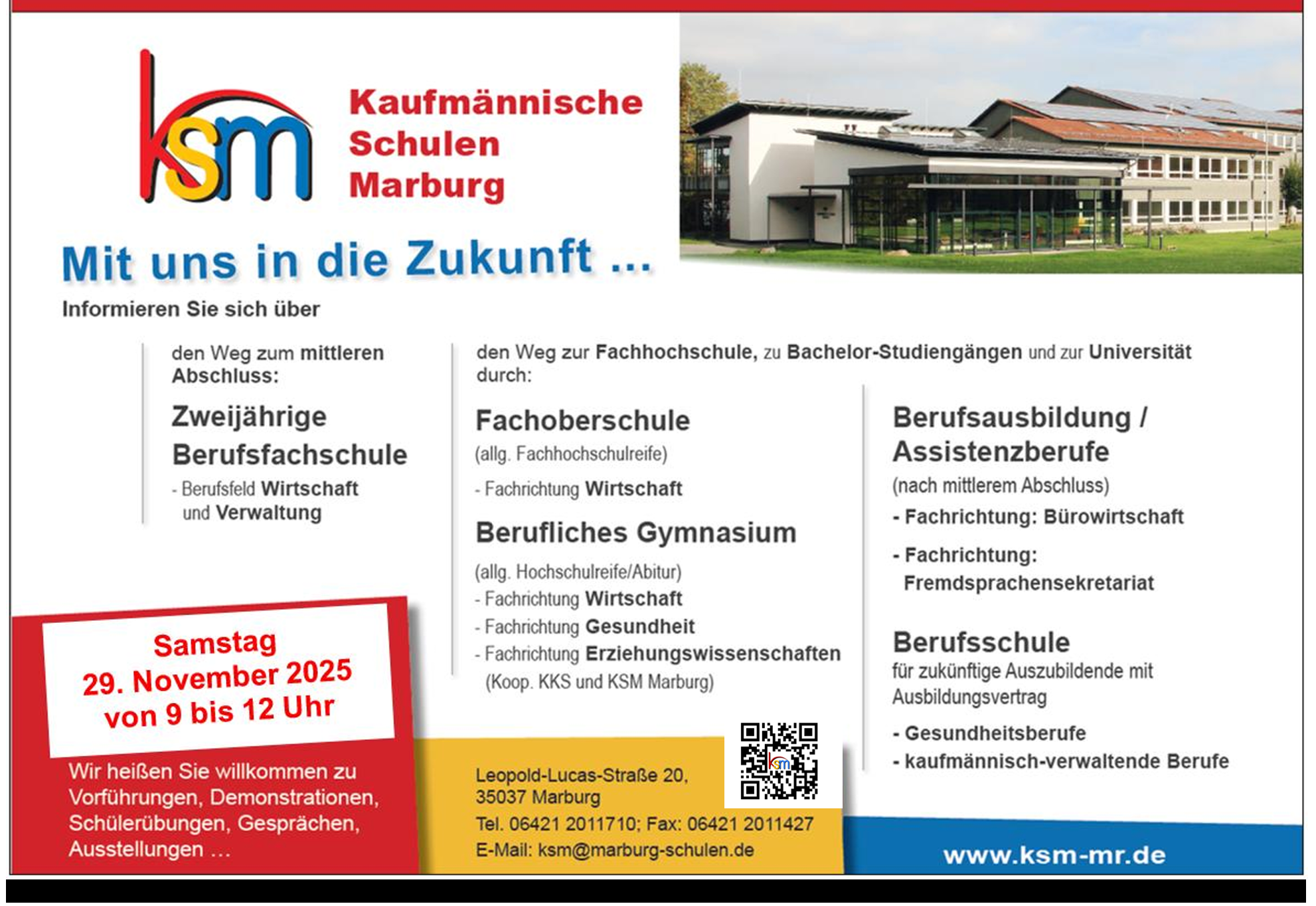 „Tag der offenen Tür“ am Samstag, 29.11.2025, von 9 bis 12 Uhr