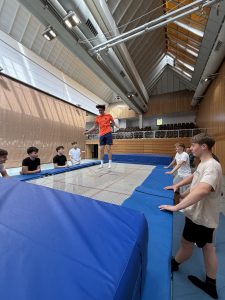 Das Angebot spiegelte die Vielfalt des Sports und die Gesundheitsförderung an den KSM wider. Bei den Teamaufgaben waren Kreativität und Zusammenarbeit gefragt, beispielsweise beim „Blinden Mathematiker“, dem „Fröbel-Kran“ oder dem Überwinden des „Spinnennetzes“ .