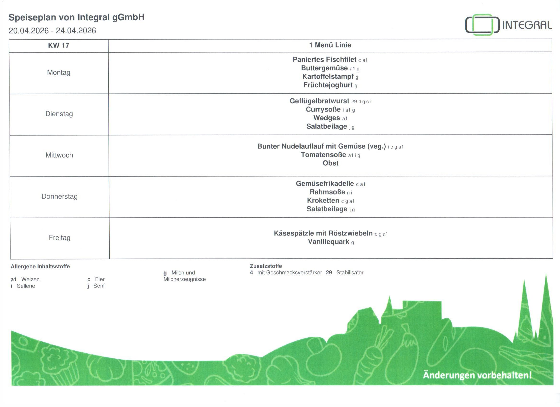 Speiseplan 17. KW 2026