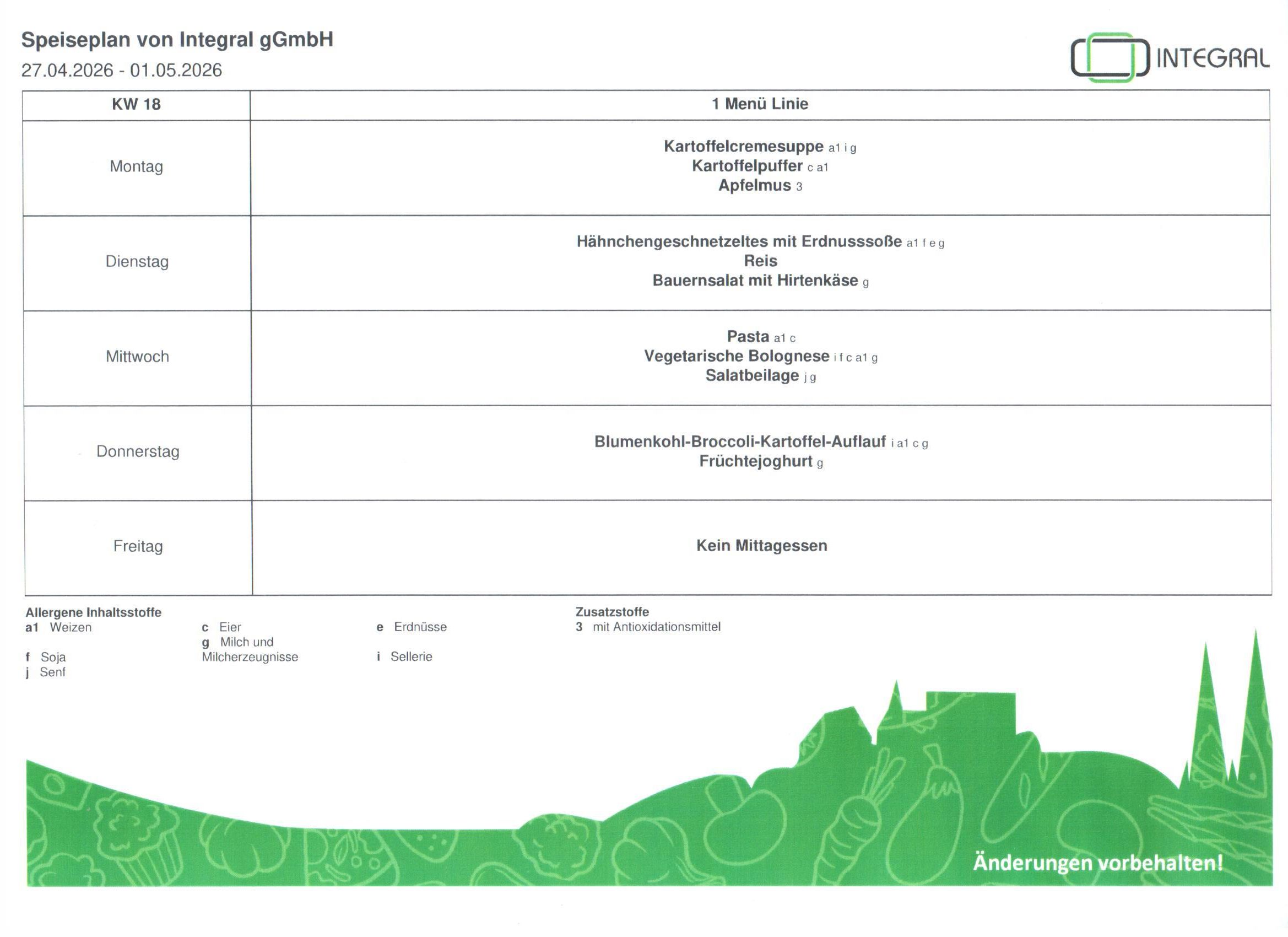 Speiseplan 18. KW 2026