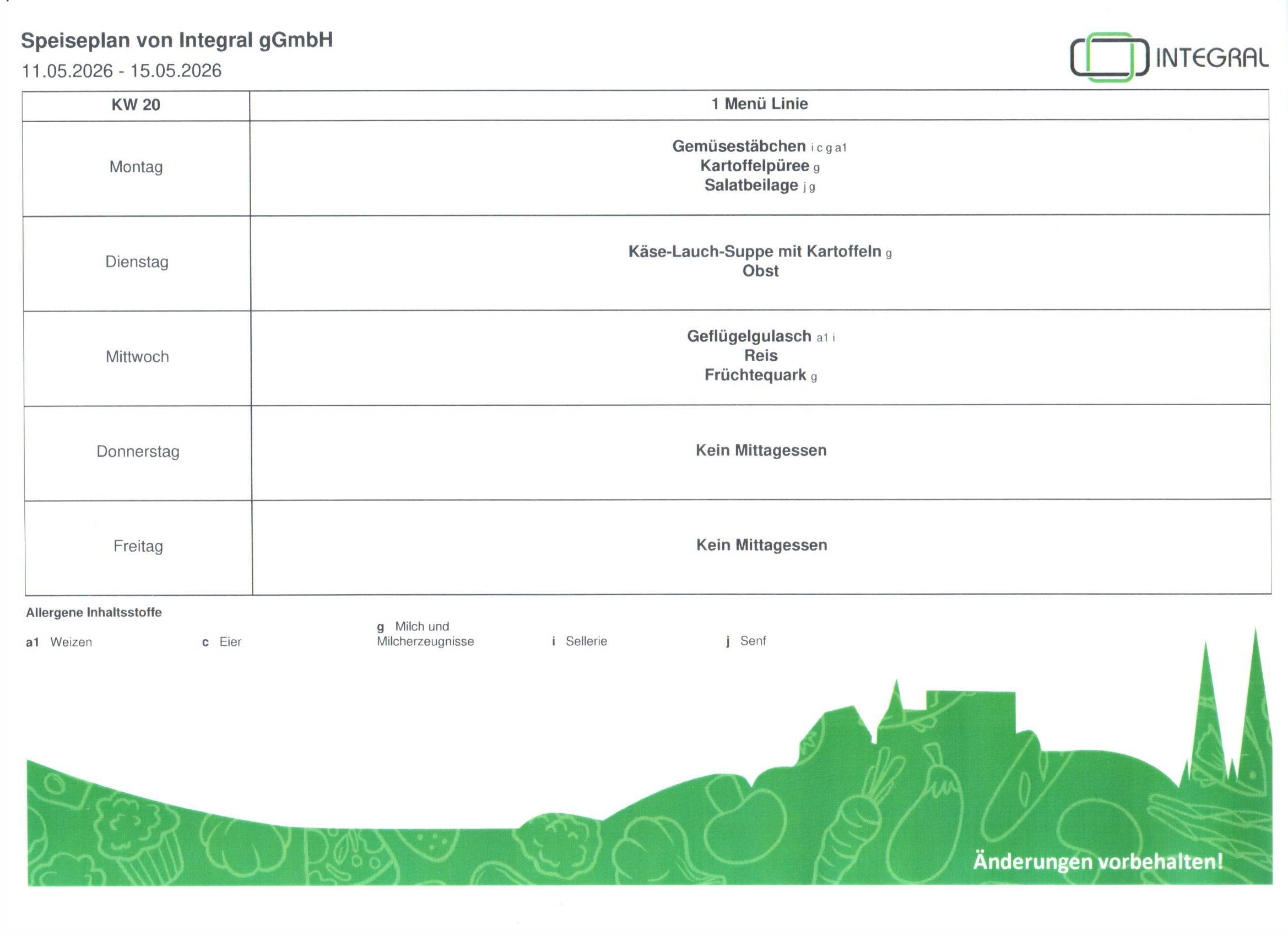 Speiseplan 20. KW 2026